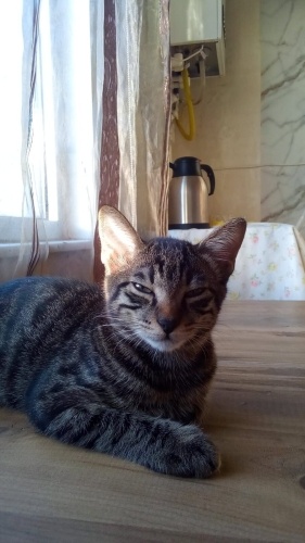 5 aylık erkek yavru kedi. Çok tatli yaramaz bir şey. Kum yani tuvalet eğitimi var. Kalici yuva aramaktayız