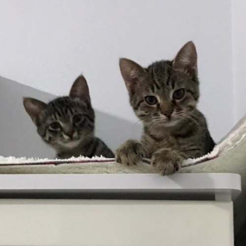 Sitemizde doğan annelerinin reddettiği biri dişi biri erkek kardeşleri fare kadarken ölmek üzereyken eve aldık, biberonla besledik ve kısa sürede toparlandılar. Şu an çok sağlıklılar. Oyuncular yaşlarından dolayı tabi, sürekli birlikte oynuyorlar ama tekir kediye göre uysallar, kendilerini sevdiriyorlar hemen mırlamaya başlıyorlar. Tuvalet eğitimleri var. Kuru ve yaş mama yiyolar.