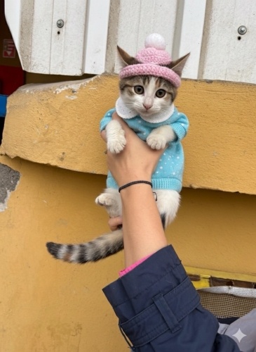 Minik bir dişi kedi, yaklaşık 4-5 aylık, inanılmaz tatlı ve insanları çok seven bir yavru! 💖