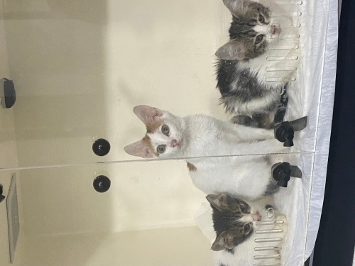 Kutunun içinde anneden ayırmışlar bırakmışlar.Şuan veterinerde kalıyorlar.2 aylık oldular.Sokağa bırakılmadan yuva arıyoruz.Cana yakın bebekler .Tekirlerde sahiplenilmek istiyor.