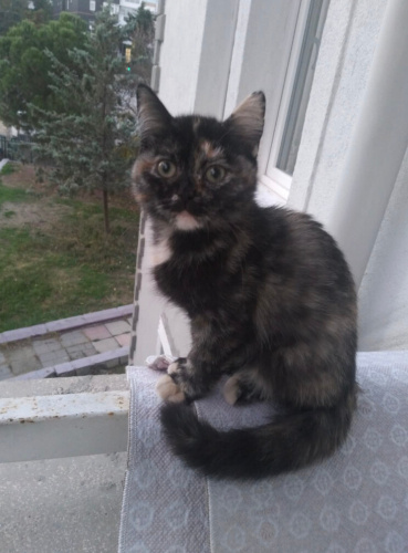 2-3 aylık civarı olan bu güzel kızı kapımızın önüne bırakmışlar. Çok sorunsuz, sakin, sevecen, hiçbir yaramazlığı olmayan bir kedi. Tuvaletini hemen öğrendi, kuru mama yiyor, hiçbir sağlık sorunu yok. Evimizde 8 kedi olduğu için ona kalıcı olarak bakamıyoruz ama siz ömürlük yuvası olursanız elimizden gelen her yardımı yapmaya hazırız. Sadece Ankara içi, takip şartıyla sahiplendirme yapabiliyoruz.