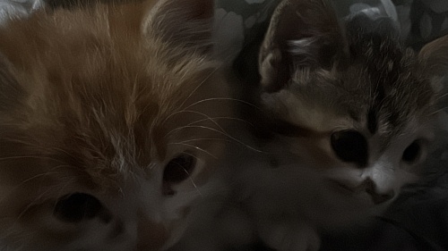 Anneleri öldüğü için evimize aldık kalıcı yuvalarını arıyorlar. Kum eğitimleri var çok cana yakınlar kendilerini temizleyebiliyorlar, tahminimizce 2 veya 3 aylıklar sarı erkek diğeri dişi