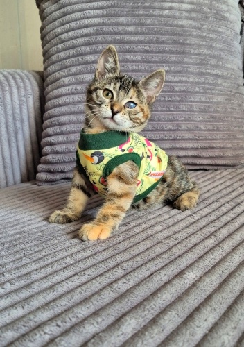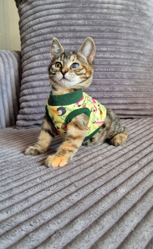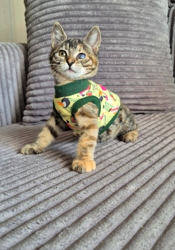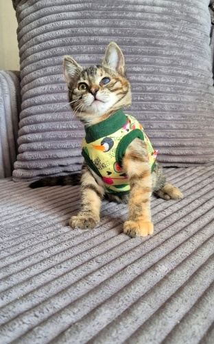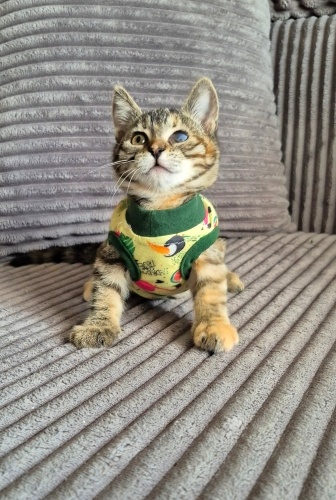 1 gözünde malesef görme kaybı var.Gereken tedaviler veteriner gözetiminde yapıldı ama ancak bukadar kurtarılabildi.Ne yaşadı henüz süt bebek hali ile bilmiyoruz..