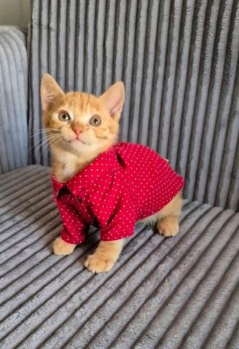Anne ve 1 kardeşi ile birlikte henüz süt bebek iken perişan halde korumaya alındılar..Geçici yuvada anne sütü alarak büyüdü.