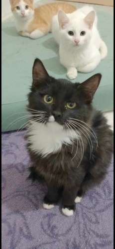 2.5 aylik dünya tatlisi erkek pofidik tuğlu smokin yavru Evde doğup büyüdüğü bol bol anne sütü içdi çok sağlikli ve uysal sevgi dolu yavru. Baska Kedilere anlaşiyor. Tuvalet eğitimi var mamada çok seviyoruz.