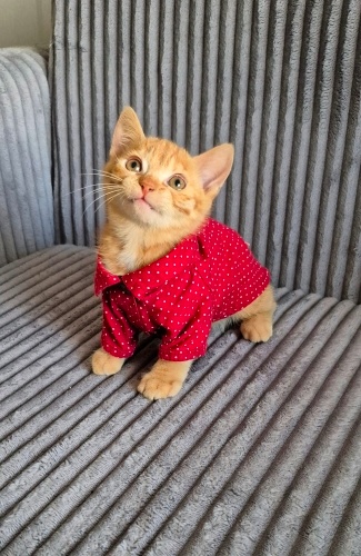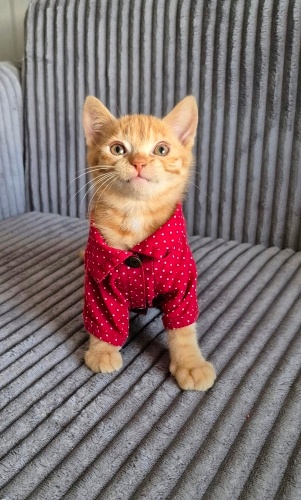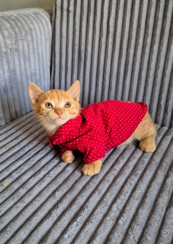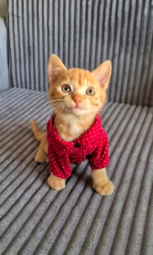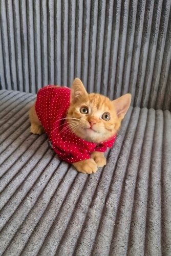 Anne ve 1 kardeşi ile birlikte henüz süt bebek iken perişan halde korumaya alındılar..Geçici yuvada anne sütü alarak büyüdü.