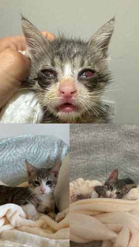 yaklaşık 2 aylık,dişi,neredeyse hiç sokak görmedi,göz tedavileri sonrası ameliyata gerek kalmadan gözleri kurtarıldı ancak tam göremiyor 😞 veteriner puslu/gölgeli şekilde görüyor dedi.Pudra diğer kedilerden evin içinde farksız fakat sokakta yapamaz :( kıpır kıpır oynamayı çok seven kızımızın geçici yuvada süresi de doldu ve gidecek yeri yok .İzmir ve çevresi-İstanbul ulaşım sağlayabilirim ☘️Çok acil yuva 🙏
