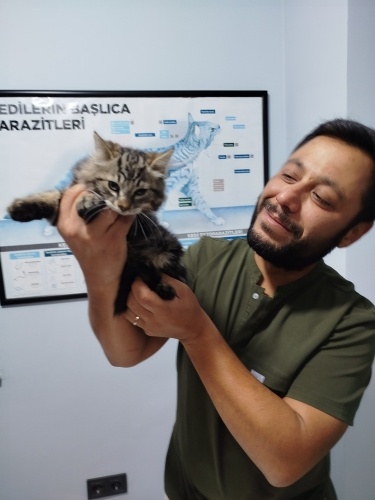 Bulunduğu yerde istenmiyordu korumaya aldık. 2,5 aylık erkek. Şu an veterinerde iç dış parazit tedavisi yapıldı.