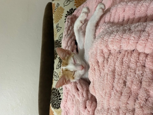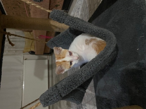 Yavruyu bulduğumda gözleri görmüyordu. Damla tedavisi sonrası şu an bir gözü görüyor diğeri de iyileşme sürecinde. Evde bakıyorum şu an iyileşince sokağa dönmek zorunda kalıcak. Ona kalıcı yuva arıyorum. Sokakta yaşamasını istemiyorum.