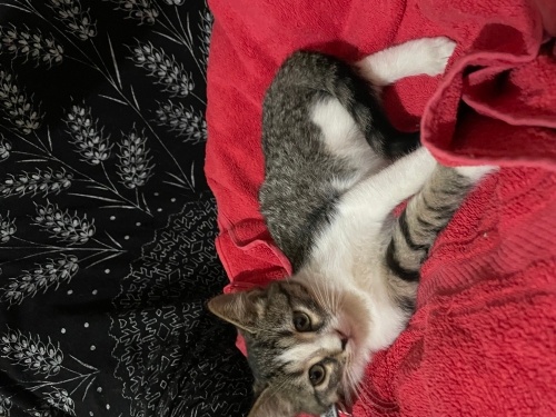 Minik bebek Geçici yuvada,ömürlük yuvasını arıyor,tekir renklerinde ve dişi çok oyuncu ve uysal,tekrar sokağa dönmesin acil yuva