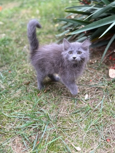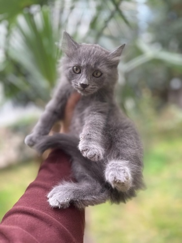 💙 Gupi yuva arıyor. 2,5 aylık, dişi, gri duman renkli bir güzellik. Russian Blue kırması (gri short/medium hair mixed) görünümünde. Hem zarif hem oyuncu, sevgiye doyamayan bir minik.