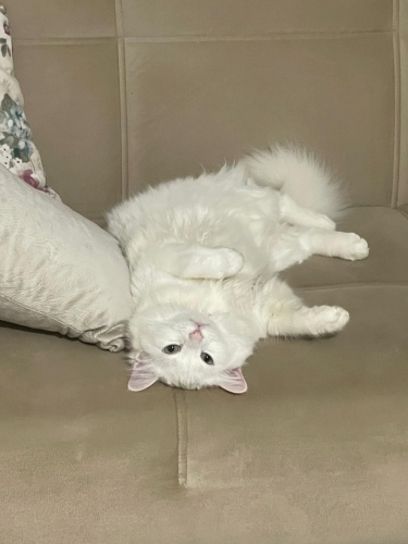 Yuki, 1.5 yaşında, bembeyaz tüyleri ve sakin mizacıyla evimizin huzur kaynağı olan muhteşem bir kız. Onu 9 ay önce sokaktan sahiplendim ve o günden beri Çekmeköy’de benimle yaşıyor. Çok uslu, inanılmaz akıllı, kendini hemen sevdiren ve evde sessizce gezinen tam bir prenses…