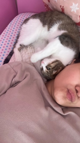 Oğluşum kısır ve minikliğinden beri benimle aşıları tam hiçbir rahatsızlığı yok çok sevecen ve oyuncu, seven herkesin yanına gider kendini sevdirir herkesin bacağında uyuyabilme potansiyeli var, bir oyuncağı uzak bir yere fırlattığınızda ağzı ile taşıyıp size geri getirir en sevdiği oyun budur ve o oyuncağı durmadan ayağınızın dibine koyar uzak bir yere fırlatmanız için. Ondan vazgeçmek benim için çok zor ancak yakın zamanda alerjim olduğunu öğrendim evin içinde çok kötü tetikleniyorum. Durmadan yanımda olmak istiyor kendini sevdirmek için ama hapşırmadan duramıyorum şimdiden yeni evine huzur getirdiğini görebiliyorum güzel oğluşumun. Gerçekten sahiplenmek isteyenler, ağladığınızda yanınıza koşan bir dost ve sıkıldığınızda en güzel oyun arkadaşım olsun diyorsanız ulaşabilirsiniz.