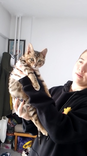 Sokakta bulundu. Tahlilleri yapılarak veteriner kontrollünden geçti. Ele kucağa alışık olduğu için dışarıda yapamıyacağını düşündüğüm için bırakamadım. Kum ve kuru mama alışkanlığı var. Vakti gelince kısırlaştırmasını ben karşılayacağım. Ele, kucağa gelmek için can atıyor. Öp öp sev.
