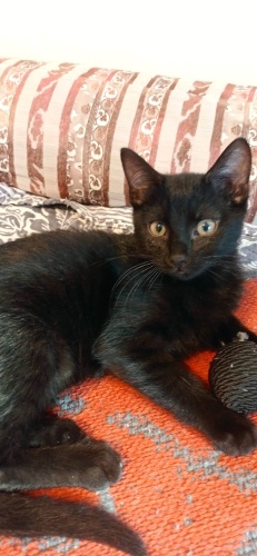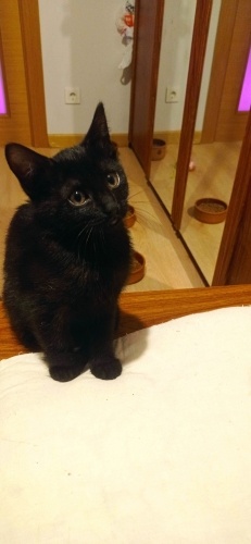 İnci kız 3 aylık, dünya tatlısı. Sağlıklı, oyuncu.Evde doğdu, kardeşleriyle annesiyle birlikte büyüdü. Anne sütü emdi, gayet sağlıklı bir siyah İnci. İnsana alışkın, sürekli elimizde, kucagimizda, uysal bir kız. Çok temiz, siyah kedilerin özelliklerini taşıyor, algıları açık, zeki, temiz. Bir aylık olmadan kum kabının öğrendi. Kuru mamasını yiyor, arada yaş mama yerse çok mutlu oluyor. Tek eksiği ömür boyu sevilip, evlat görüleceği bir yuva. Böyle güzel bir kız istiyorsanız beni arayabilirsiniz.