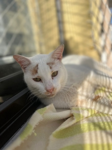 Kısırlaştırıldı şu an geçici yuvasında koruma altında dişleri çekildi.tedavisi yapıldı.kurumama ve yaş mama yiyebiliyor. Ama sokakta asla yapamamaz. Camdan dışarı seyretmeyi çok seviyor Uysal çok sevecen.