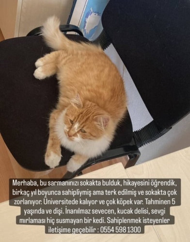 Önce sahiplenilip sonra terk edilenlerden. Korumaya alındı. Çookkk uysal, evde terbiyeli. Kum eğitimi var. Sevgi dolu ve insancıl. Ömürlü yolculukta onun patisinden tutarak ona ihtiyacı olan güveni sunan şefkatli kollarıyla sarmalayıp bir ömür seven mucizevi meleği sen olur musun? İletişim tel:05545981300 YASLAR GEREĞİ ÇİP SARTI VARDIR VE TAKİP SÖZLEŞMESİYLE VERİLECEKTİR ‼️