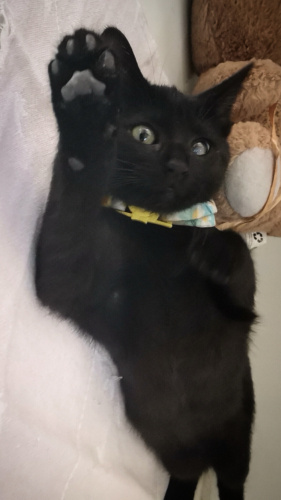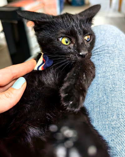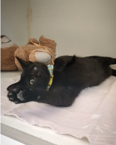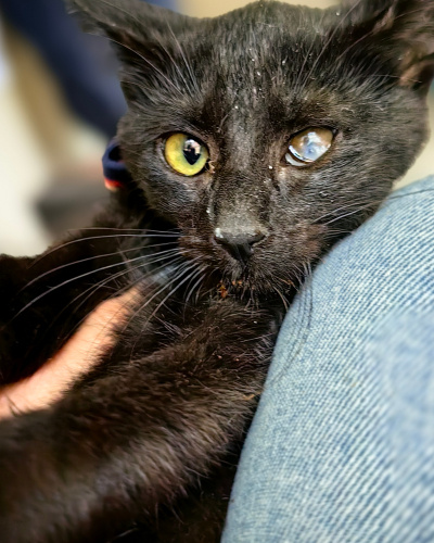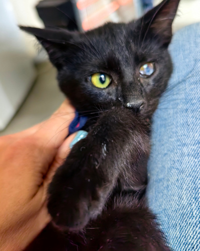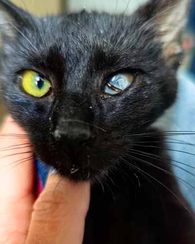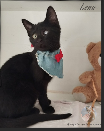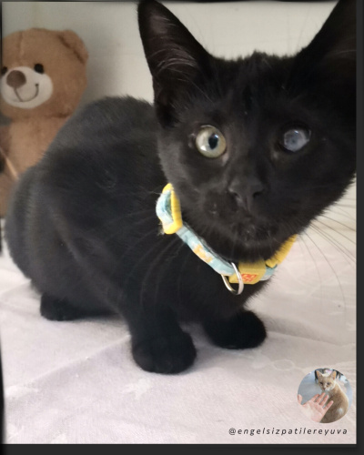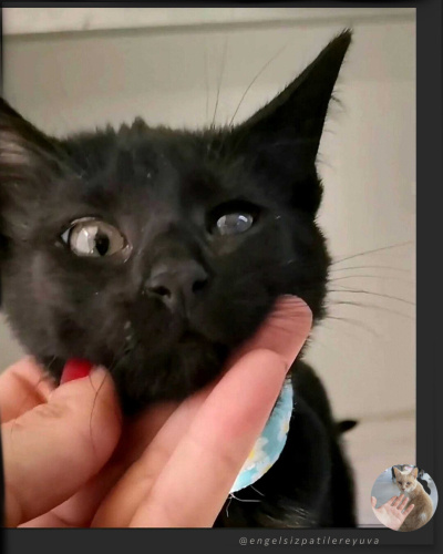 Tam bir love kedisi kendisi. Oyun oynamayı çok seviyor. Kedilerle de insanlarla da uyumlu. Kucakta yatmaya, Sevilmeye bayılıyor. Bir gözü görmüyor ama evde diğer kedilerden farklı değil. Özel bakım ihtiyacı yok. Kum kullanıyor, kuru mama yiyiyor. Tahminen 2.5-3 aylık.