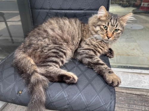 Timuçin sokakta yaşayan ve arasıra dükkana girip çıkan bir can, çok akıllı. Bir derdi olduğunda hemen gelip anlatır ve yardım ister. Çok sevecen, sizinle konuşur ve göbeğini açar. Sokakta maalesef bilmediğimiz bir sebepten omzu çıkmış ve yanlış kaynamış ondan dolayı maalesef sendeliyor ve artık sokakta yaşaması onun için tehlikeli. Ondan dolayı çok sevileceği yuvasını arıyor.