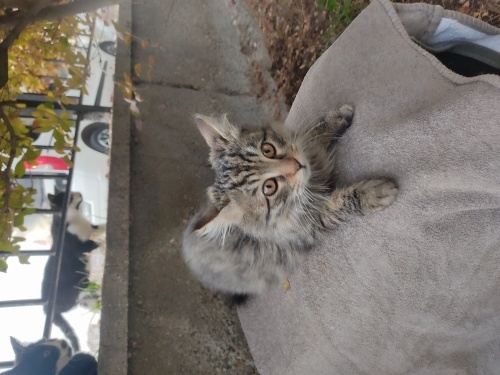 Oturduğum sitede annesiz üç yavrudan biri. Eryaman'da metromoll yakınında oturuyorum. Site yönetimi ve yaşayanlardan sürekli şikayet alıyorum. Çok tatlı, hemen kucağa gelir. Dişlerinde sorun olduğu için tedavi gördü, şu an durumu iyi, ama bu soğuklara dayanamaz. Ona sıcak bir yuva olur musunuz?