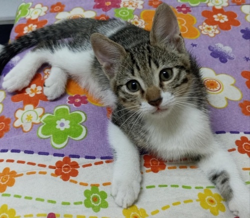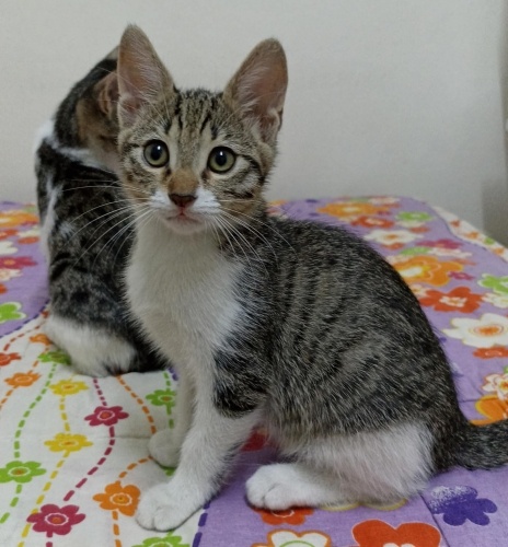 4 aylık erkek tekir yavru kedi. Aşısız. Oyun oynamayı çok seven, insan canlısı bir yavru. Sevilip oyun oynatılacağı, ömürlük yuvası aranıyor. Kardeşleriyle birlikte evde büyütüldü. Sorumluluğunu alabilecekseniz, sahiplenmek için iletişime geçin.