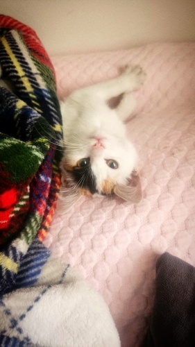 Calico kediler eşsizdir. Güzellikleri dillere destan, işveli, ilgiye bayılan, oyuncu, uslu ve yumuşak huyludurlar. Bu prensesi annesini ve kardeşlerini kaybetmiş, tek başına ürkek ve korkak halde bulduk. Veteriner kontrolü, iç dış parazit aşıları yapıldı. Kum kullanıyor, kuru mama yiyor. Yaklaşık 2-2.5 aylık, dişi. Can bakmanın maddi ve manevi sorumluluğunu alabilecek, düzeni oturmuş bir aileye sahiplendirilecektir.