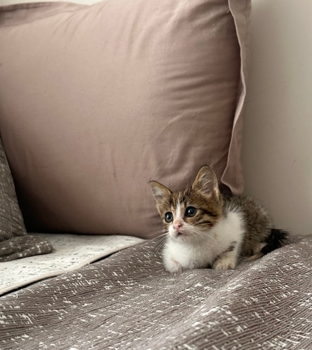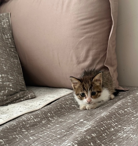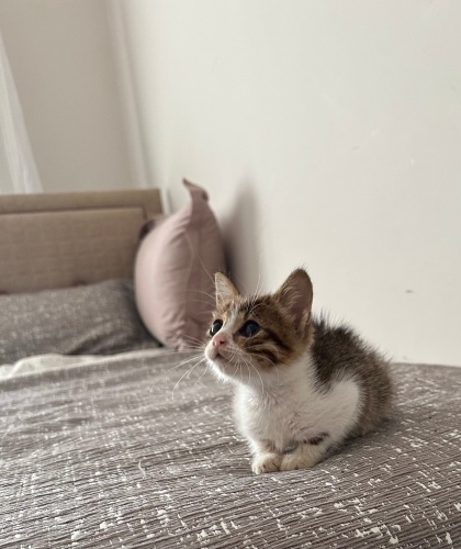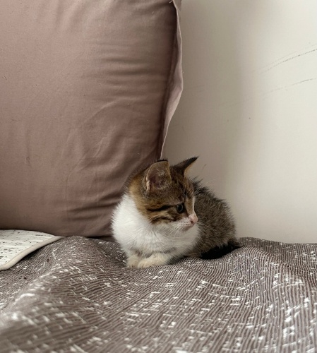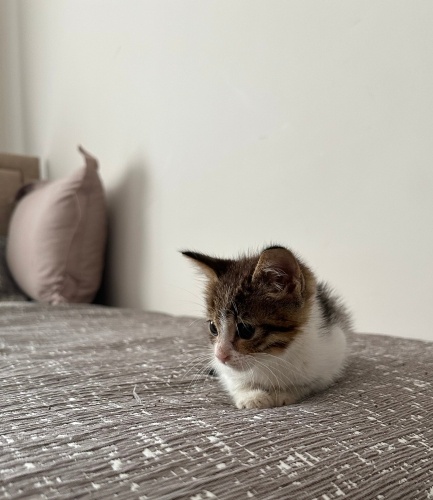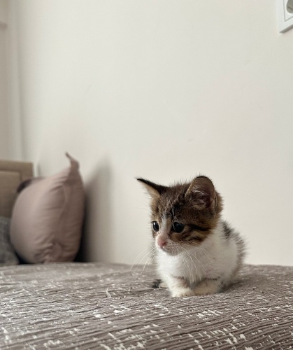 ACİL YUVA💌 Sokakta bulduğumuzda tek başına kalmış ve çok halsizdi.Bi süre veterinerde kalıp tedavisi tamamlandı.iç dış parazit aşısı yapıldı.Kum eğitimi mevcut kuru mama yiyor.Yaklaşık 2 aylık bu güzel çocuğa yuva arıyoruz.Konum Manisa merkez fakat İzmir ve çevresine de yuvalandırma yapabiliriz.