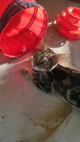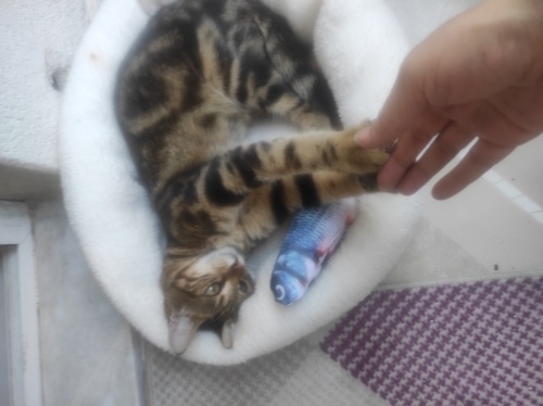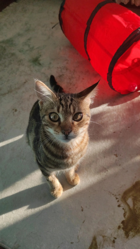 Bir yaşında, erkek. Onu buldugumda boynunda tasması ile yabancısı olduğu sokaklarda, herkese sevilmek isteğiyle koşuyordu. Korumaya aldım. İç dış parazit ve karma aşısını yaptırdım. Kum eğitimi tam, yaş mama- kuru mama - yemek yiyor. İsirmiyor,tırmalamiyor. Aşırı derecede sevgi dolu,uysal. Diğer kedilerle anlaşıyor. Evde çok hırçın bir kedim var ve onu zorbaliyor. Bir odada mahsur kaldı ve ben bütün gün yokum. Ona sevgi verecek ilgi gösterecek birine ihtiyacı var. Kısırlaştırmaya destek olurum.