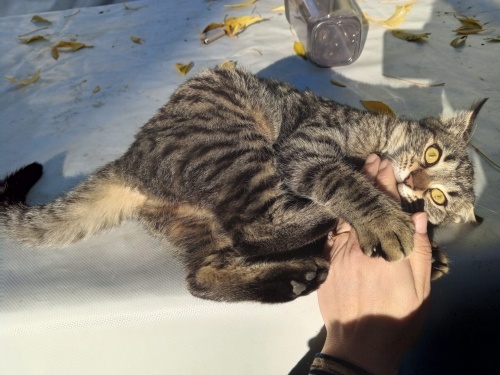 5 aylık dişi yavru kediye kalıcı yuva arıyoruz. Kum eğitimi var. 1 aylıkken annesine araba çarptı ve kardeşleriyle birlikte bulundu. Geçici yuvada süt ile beslendi. Şimdi bahçede kalıyor. Mimi yemek yemeyi, kardeşleriyle oynamayı çok sever, uysal bir bebektir, hep mırlar. Tüm kardeşleri sahiplendirildi, Mimi yalnız kaldı. Onun kalıcı yuvası olmak istiyorsanız arayabilirsiniz. Takip şartı ile sahiplendirilecektir.
