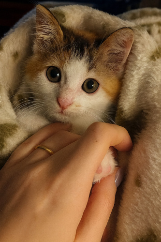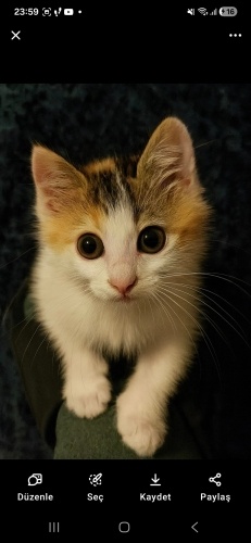 25.11.2025 📍 İstanbul 🌸 Aiko yuva arıyor. 2 aylık, dişi calico minik prensesimiz; kocaman gözlü, yumuşacık kalpli ve çok sevecen. İç–dış parazit uygulamaları yapıldı, sağlıklı.