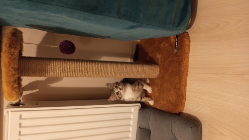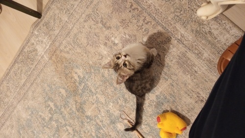 1ay önce kutu içinde terk edilmiş yavruydu. 3 aylık şu an. Mama kum alışkanlığı mevcut ve konulardan anlıyor. Çok akıllı ve sessiz sesini duymak için kulaklarınızı açmanız gerek. 1aydır ayrı odada ve kendiyle çok barışık bir çocuk. En sevdiği ev yoğurdu. İç dış parazit kan tahlili yapıldı. Karma 1 aşı bir hafta sonrasında. Çok sevilecek huzurlu ve mutlu olabileceği bir yuva istiyoruz. Sözleşme ve takip şartıyla sahiplendirilecektir