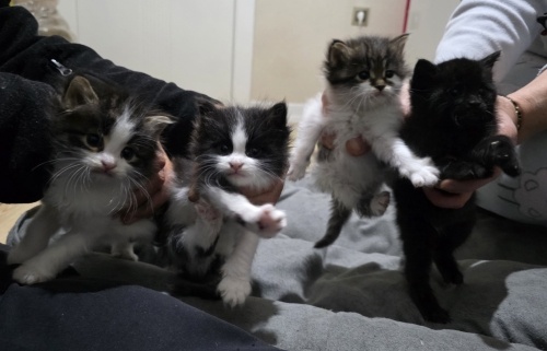 (SİYAH BEBİŞ SAHİPLENİLDİ) Bu 4 dişi bebeği anneleri ile birlikte sokakta bulduk. Bir süredir veterinerin evinde kalıyorlar. 15 gün içinde yuva bulamazsak sokağa bırakacağız.