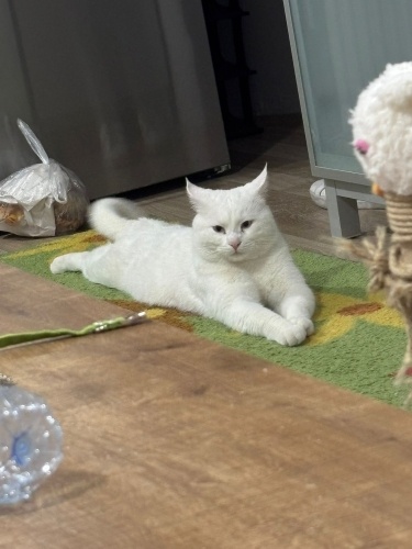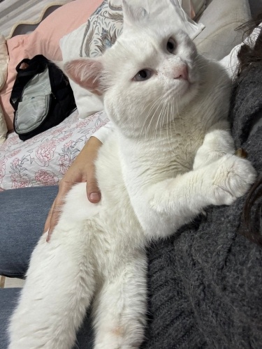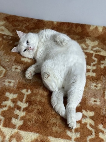 British cinsi beyaz kısır erkek kedi. Her iki kulağıda sağır. Sokakta bırakıldı terkedilmiş ya da kaçmış. Çipi yok. Bulunduğunda kısırlaştırıldı ve karma aşısı yaptırıldı. Şu an geçici yuvada fakat zamanı kısıtlı. Tam bir kucak delisi. Duymaması onu daha az kedi yapmıyor. Mırıl mırıl bir hayvan. Duymadığı için biraz yüksek sesle miyavlayabiliyor. Ortama alıştığında miyavlaması daha da azalacaktır. Başka bir kedi ile yaşamaya uygun olup olmadığını bilmiyorum ama tam bir insan sevdalısı. Sağır kedi bakımından anlayan ve onunla yaşama sorumluluğunu alacak kişiler tarafımıza ulaşabilir