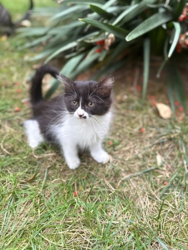 🖤 SOFİ – Smoking prenses yuva arıyor. 2,5 aylık, dişi, şık mı şık, bembeyaz göğüslüğü ve siyah frak görüntüsüyle tam bir smoking kedi. Hem asil hem oyuncu; adeta minik bir baloya hazırlanmış gibi.