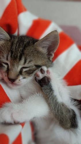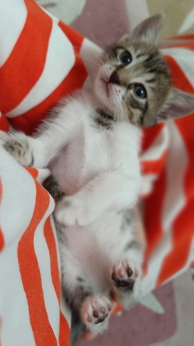 28 Şubat doğumlu erkek kedi. Çok hiperaktif, minnoş bir çocuk. Temas ve oyun bağımlısı. Pıtı pıtı gezmeyi, koşmayı, uykuyu ve yemeği çok seviyor. Katı mamaya geçiş yapalı bir ay oldu. Tuvalet eğitimi var. Mama dışında süt, yoğurt, et, yumurta sarısı da yiyor. Henüz veterinere gitmedi. Ömür boyu onu sevecek,koruyacak sahibini arıyoruz.