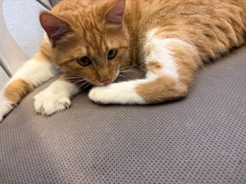 2 aylıkken besleme yaptığımız bahçemizde belirdi. Temiz, sıcakkanlı, şaşkındı. Evden atıldığını düşünüyoruz. Besleme sırasında bizimle eve gelmek istiyordu. Yağmur yağdı ertesi gün halsiz buldum. Sokağı, yağmuru bilmediği için üç günde hastalanmıştı. Tek elimle tutup boynumun altında vete götürdüm. Göğsüme sokuldu, ses çıkarmadı. Kontrollerini detaylı yaptırdık, üşütmeye bağlı enfeksiyon çıktı. Kısa bir tedavi gördü; karma ve parazit aşılarını oldu.Sokağa bırakmak istemedik eve de alamadık 2 hasta 3 kedimiz var. Geçici yuva olarak veterinerde bekletiyoruz. 5 aylık oldu, kısırlaşacak küçük adam. İnsan seviyor, kucağa sokulup gırlıyor. Çok sevileceği, değer göreceği ailesine kavuşsun istiyoruz. Aylardır veterinerlikte, çok seviliyor ama artık çok sıkıldı çok üzülüyor. Veterinerlik de artık alın diyor. Kafesteki süresi bitti bu sokağa gitmeden son şansı.