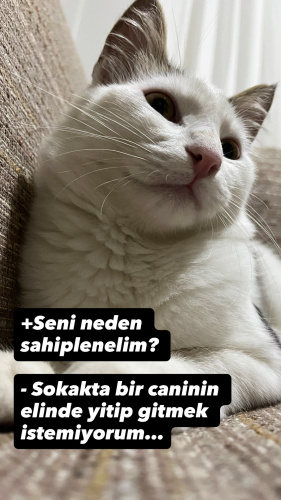Köpük sokakta doğdu, onu sokağın zor şartlarına terk etmeye gönlümüz el vermedi, korumaya aldık. Bu sevgi dolu, durmadan yoğuran yavru kedinin onu terk etmeyecek ömürlük yuvasını arıyoruz. Köpük’ün iç- dış parazit uygulamaları, karma aşıları, lösemi aşısı yapıldı. Siz ona kalbinizi açar mısınız?