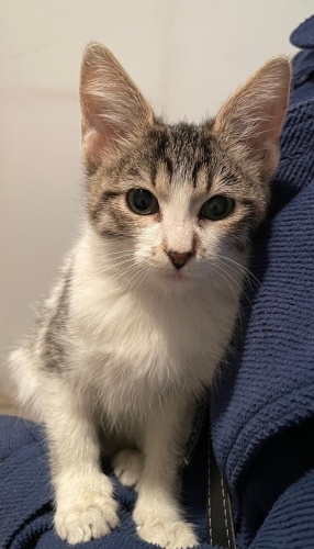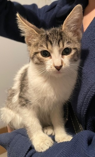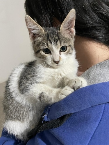 Bu minik 1,5 ay önce diğer bir yavru kedi ile belediyenin kedi evinde ağır ishal şekilde bulunmuş olup, tedavisi klinik ortamda yapılmış ve sağlığına kavuşmuştur. O günden beri korumamızdadır ve sığınakta bakılmaktadır. Ancak henüz bebek olduğu için onun da sıcak bir yuvaya ihtiyacı var.