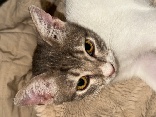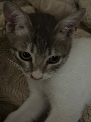 Çalıştığım okula bırakılmış harika bi bebek,evde sekiz kedim olduğu için ömürlük yuvasınj arıyorum.Gri beyaz renkli,kocaman harika gözleri var,iyi huylu ve inanılmaz uyumlu