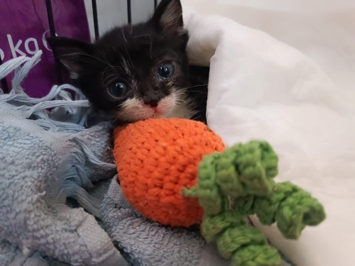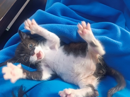 Ölmek üzereyken dışarıda bulundu, veteriner kliniğinde biberon ile büyütüldü. Artık kuru mama yiyor, kum alışkanlığı var. Sadece koruyucu olarak verilen bir ilacı var. Veteriner kontrolü ve ilacı ücretsiz verilecektir