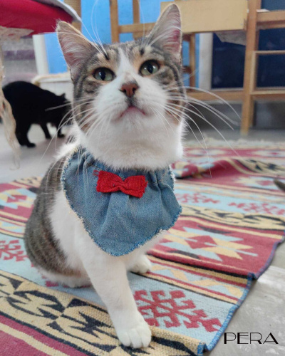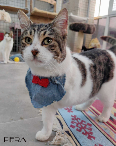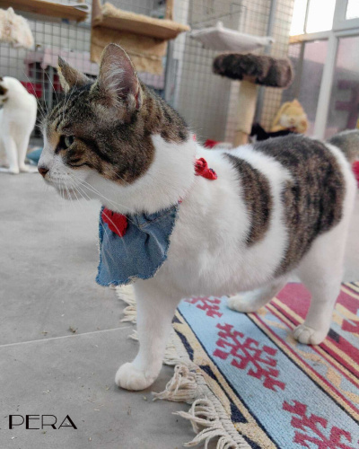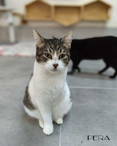 Pera, geçirdiği trafik kazası sonucu bir bacağını kaybetmiş. İnsanlarla da kedilerle de çok uyumlu bir kız çocuğu. Evde diğer kedilerden hiçbir farkı yok. Tüm ihtiyaçlarını kendi karşılıyor. Ama sokakta tehlikelerden kendini koruyamaz. Sevilmeye bayılıyor. Onun sıcacak kalbini görseniz vazgeçemezsin.