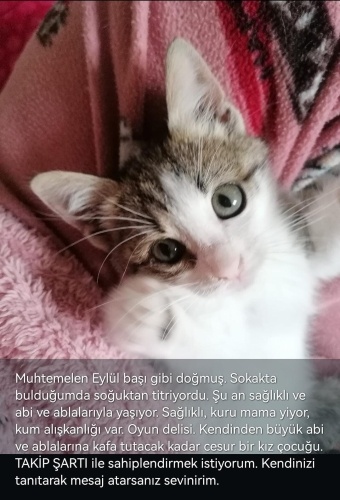 Paşa ve Kahve erkek, 2 Haziran'da doğdular. Çitlembik dişi, oda 2 Haziran doğumlu. 3 kardeşler. Çilek 1 Eylül doğumlu dişi. Bebelerimin hepsi sağlıklı. Kuru mama yiyorlar, kum eğitimleri var. Onlara mutlu olacakları bir yuva arıyorum. Lütfen yavrularıma aile olun. İlgilenenler minnakımın ismini yazıp, bana whatsaptan mesaj yazabilir mi? Takip şartıyla güvenilir bir aileye sahiplendirmek istiyorum.