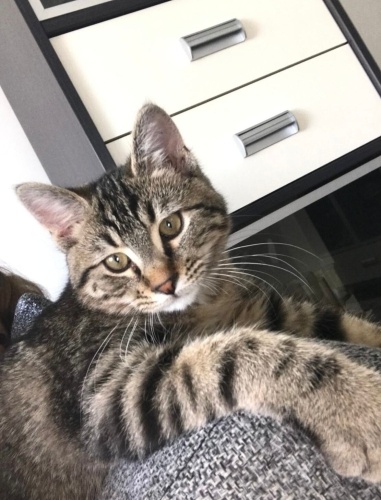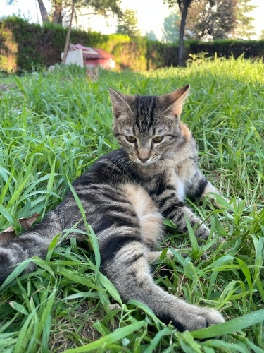 Kaplan desenli, tekir oğlan, 7 aylık civarı, sağlıklı, oyuncu ve hareketli bebek. Kum eğitimi var. Kuru ve yaş mama yiyor. İç-dış parazit uygulamaları var. İnsan canlısı, sevgi dolu, gurgur bebek. Kucakta bebek gibi oturur ve sevdirir. Diğer kediler ile arası gayet iyi.