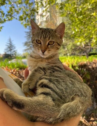 Lily, tekir kız, 6 aylık civarı sağlıklı bebek. Kum eğitimi var. Kuru ve yaş mama yiyor. İç-dış parazit uygulamaları var. İnsan canlısı, sakin ve sevgi dolu, gurgur bebek. Diğer kediler ile arası gayet iyi.