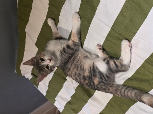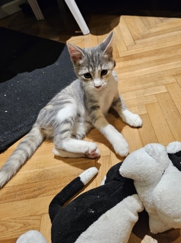 3 günlükken annesi tarafından terkedilen bu yavru ev ortamında özel ilgilenilerek büyütüldü bebeklikteki hayati tehlikesinden kurtulduğumuz için artık sahiplendirebilirim beyaz gri sarı 3 renkli 3 aylık iç parazitleri yapılmış gözü açıldığından beri insana alışık yavru kedi