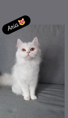 Adı Aria ,dişi ,kısır değil,2 yaşında,çok uslu bir kız,yaş mama ve sevgi delisi bir kız..