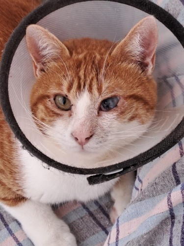 Bu güneşli, çok sevecen ve inanılmaz oyuncu turuncu-beyaz koçyiğit, ciddi bir göz travmasının ardından sokaktan kurtarıldı.