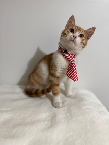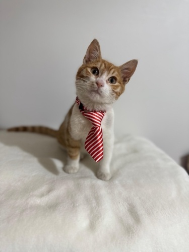 Kravatlı minik beyefendi! Sevgi dolu, oyuncu, meraklı ve insan odaklı bir çocuk. Ev ortamına alışık, sağlıklı ve bakımlı.