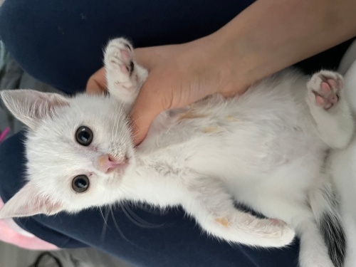 Merhaba araba kaputundan kurtarıldı eve alıp temizledik yıkadık mis gibi oldu bembeyaz yavrumuz , 4 gündür bende daha fazla evde bakamıyorum bugün akşama kadar vakti var çok sırnasık güzel huylu lütfen yuva olun sokağa gitmesin