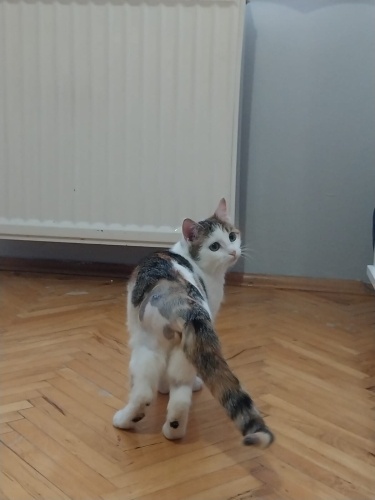 Yaklaşık 4 -4.5 ay civarı. İsmi: ARI. VAN MELEZİ BİR CALİCO O. Güzel kızımızın önce bebekken annesine araba çarptı. Biberon desteğiyle büyütüldü.sonra bakıldığı bahçede tekme atılmış kalçası kırık halde bulundu. Ameliyat oldu.tadavisi bitti. Korumaya alındı. Her türlü ev terbiyesi var. Kum kullanıyor. Şu an seslerden bile korkuyor. Dışarda yapamıyor. Onun huzurla büyüceği yuvası ona şefkat ve sevgiyle sarılan annesi olması gerekiyor. Aşıları tam. Sevgi dolu, sımsıcak bir prenses o. Onun patisinden tutup bir ömür güvende tutacak iyilik meleği sen olur musun? İletişim tel:0535 879 54 28 TAKİP ŞARTI VARDIR‼️